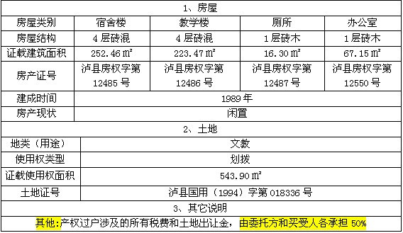 受瀘縣喻寺鎮(zhèn)人民政府委托,我公司將于2015年1月28日上午10時(shí)在瀘縣公共資源交易中心拍賣(mài)大廳公開(kāi)拍賣(mài)瀘縣喻寺鎮(zhèn)廣東街(原喻寺鎮(zhèn)中心幼兒園)的房產(chǎn):